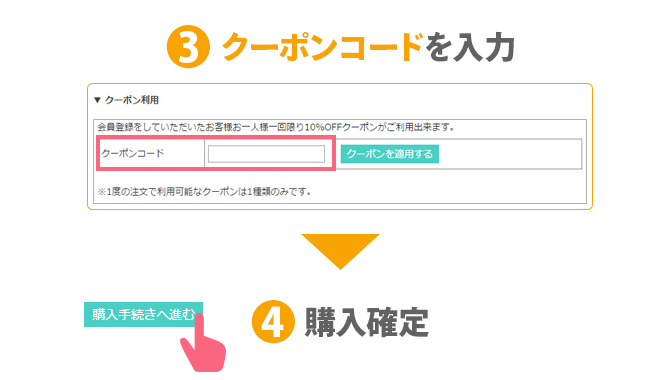 初めて購入する人はクーポンコードを入力する画面がでますので